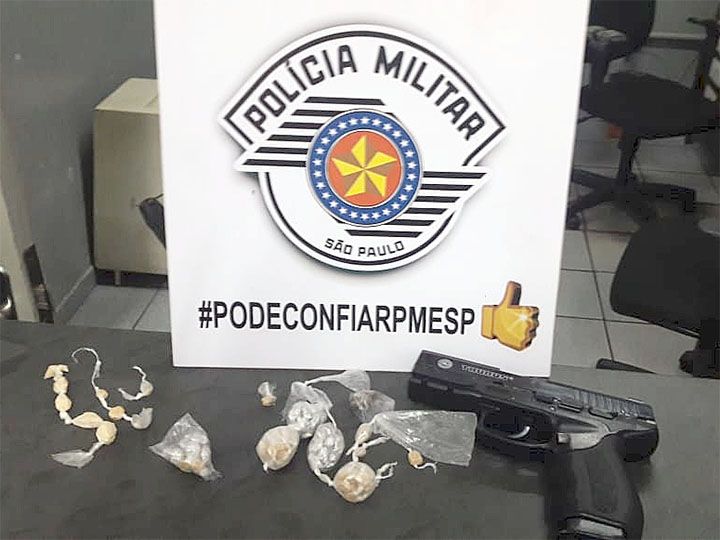 No início da madrugada desta quarta-feira (15), após denúncia, a Polícia Militar deteve um adolescente de 16 anos e, na residência dele, localizou e apreendeu 85 pedras de crack e uma réplica de pistola.