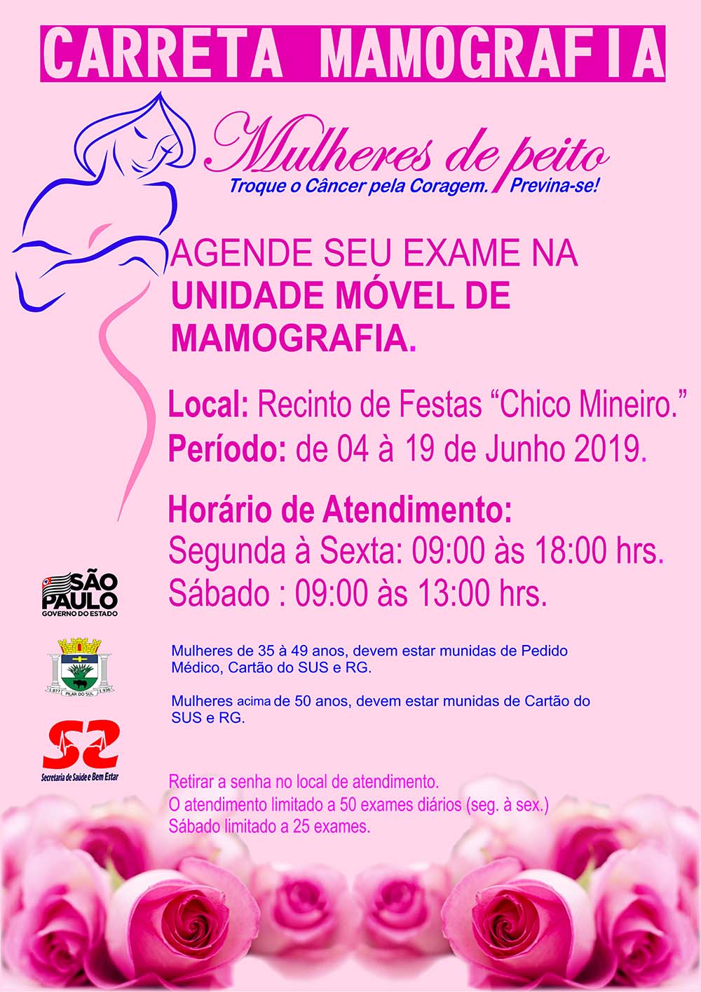 ‘Mulheres de Peito' é um programa do governo do estado, realizado em parceria com a Prefeitura, por meio da Secretaria Municipal de Saúde, e veio para Pilar do Sul por intermédio dos vereadores Clayton Machado, por meio de reuniões, e Karla Pagianotto, através de oficio, junto a Secretaria Estadual de Saúde.