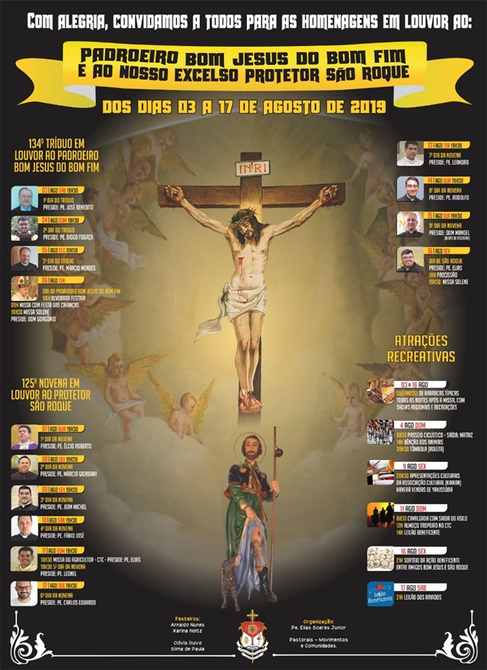 A Paróquia Bom Jesus do Bom Fim inicia neste sábado (3/08) a 134ª festa em louvor ao padroeiro. O tríduo em honra a Bom Jesus do Bom Fim acontece de 3 a 5 de agosto sempre às 19h30.