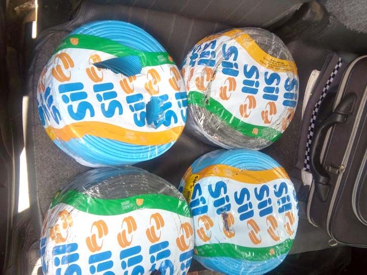 Durante revista, os PM localizaram quatro rolos de fio elétrico 6mm, avaliados em R$ 350 cada um, e um par de botina, marca Garotti, que é vendida por R$ 250, que o homem confessou ter furtado das lojas Sartori, Maia e Ouro Safra.