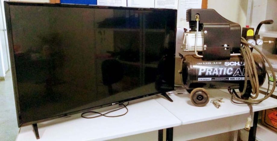 No bar, os policiais localizaram o compressor e na residência, localizada na rua José Gentina, encontraram a TV LG 43’, ambos furtados da chácara.