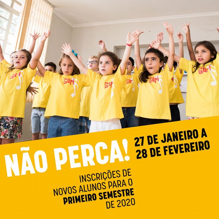 O Projeto Guri informa que se encerram na sexta-feira, 28 de fevereiro, as inscrições para as últimas vagas dos cursos gratuitos de cavaco e canto coral para crianças e adolescentes de 6 a 18 anos - aulas às quartas e sextas no período da tarde.