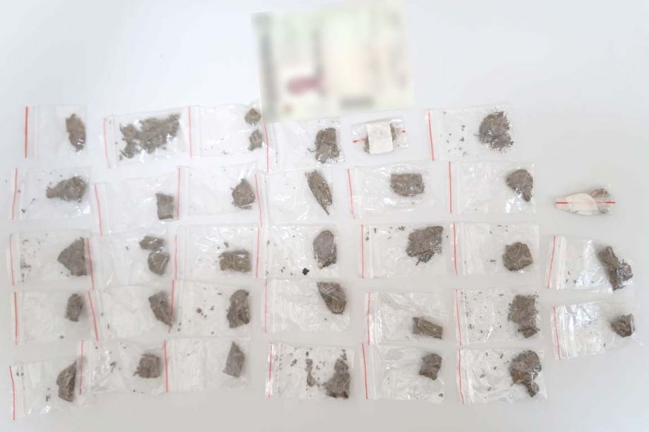 Segundo a polícia, durante a revista pessoal, foram localizadas 33 porções de maconha (67,9 gramas) escondida na meia do suspeito.