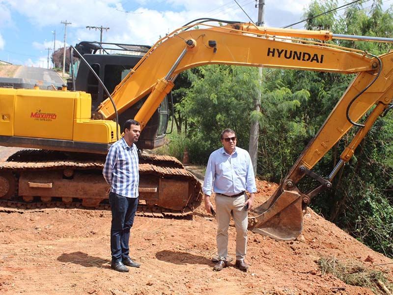 O prefeito Marquinho da Auto Escola (DEM) e o engenheiro Eduardo Oliveira, do setor de obras da prefeitura, estiveram vistoriando o local para o início das obras, que consistirão na substituição do tubo metálico por tubos de concreto e implantação de cabeceira, caso necessário.