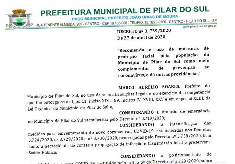 CONSIDERANDO a situação de emergência no Município de Pilar do Sul reconhecida pelo Decreto nº 3.719/2020;
