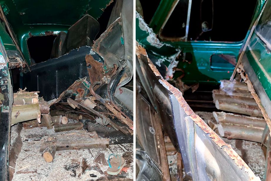 Com o violento impacto, toda a carga foi pra cima da cabine, rompeu a lataria do lado direito, justamente onde estava a criança, e a prensou entre o banco e o painel do veículo.