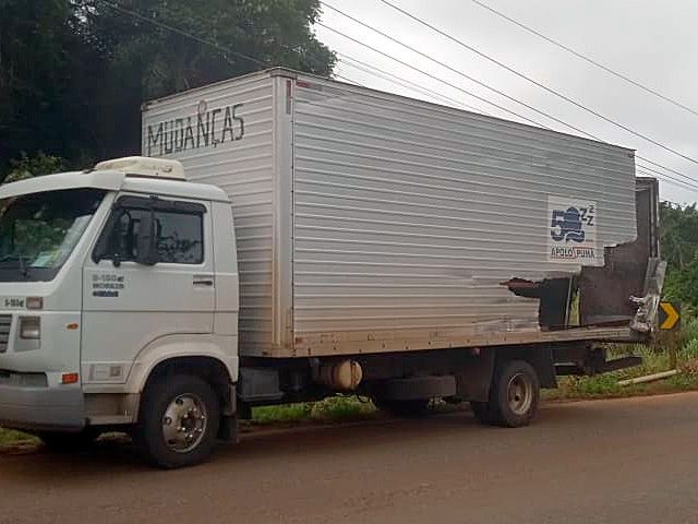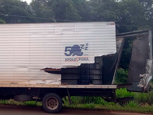 Ambos sofreram avarias do lado esquerdo, pior para o caminhão baú que sofreu grande dano na carroceria.
