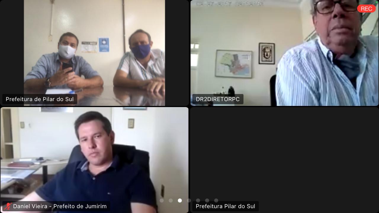Na manhã desta quinta-feira (21), o prefeito de Pilar do Sul Marco Aurélio Soares (DEM) e o ex-vice-prefeito Angelo Paiotti participaram de uma reunião por meio de videoconferência com Alfredo Moreira Neto, diretor regional do DER de Itapetininga, e com o deputado estadual Edson Giriboni (PV).