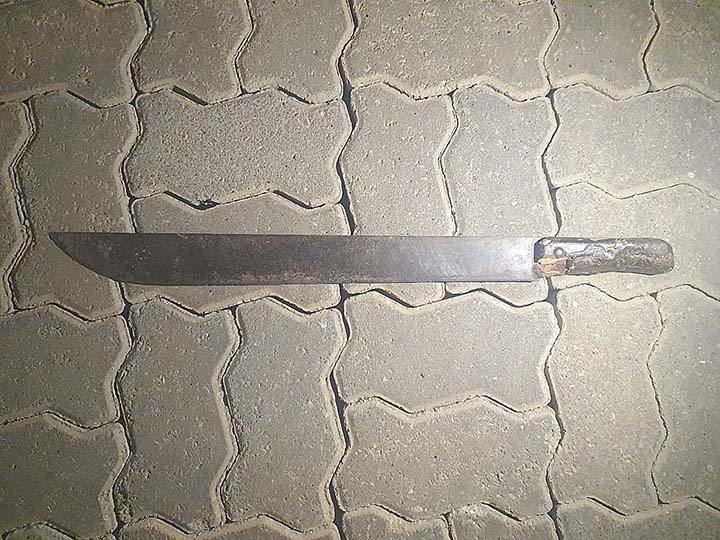Pouco depois, em diligência pelo bairro, os policiais localizaram e prenderam o pedreiro que fugia a pé, ainda de posse do facão utilizado para golpear o padrasto.