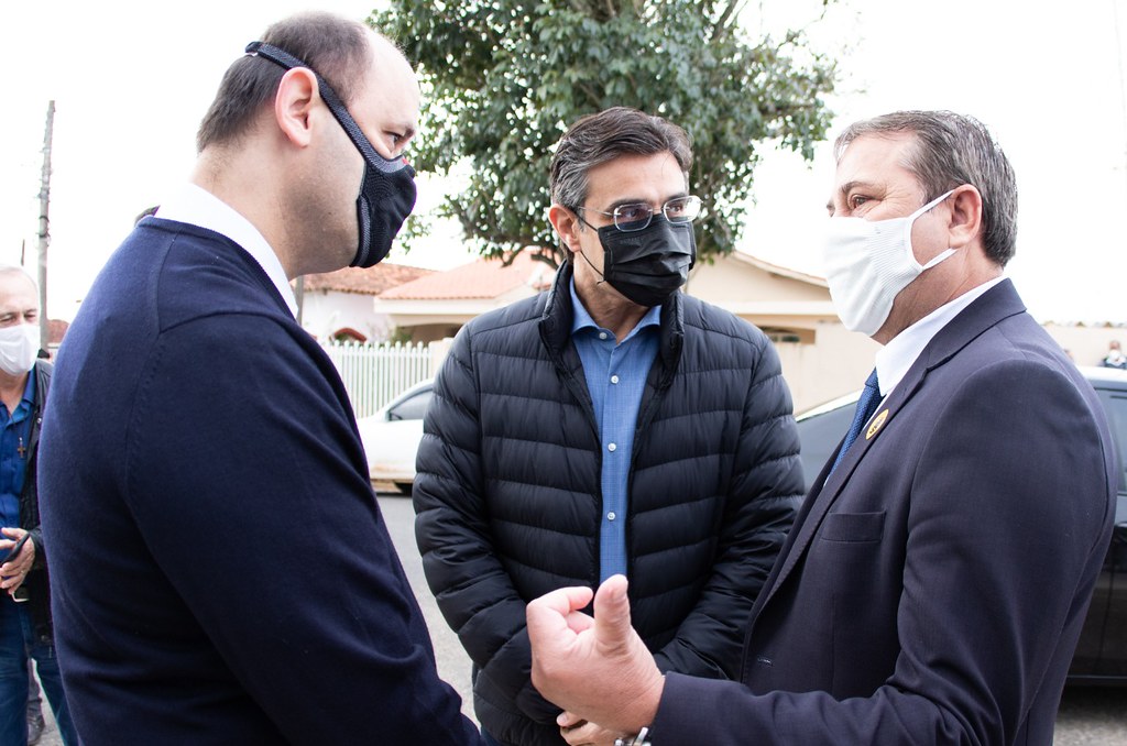 Secretário Rossieli Soares.vice-governador Rodrigo Garcia e prefeito Marco Aurélio (Marquinho da Auto Escola) / Fotos: Divulgação / Governo de SP