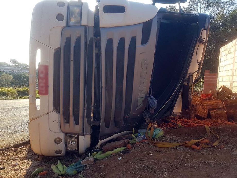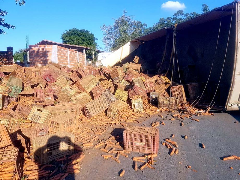Segundo a polícia, a carreta carregada com aproximadamente mil caixas de cenouras seguia sentido Tapiraí quando, por razões a serem apuradas, o motorista perdeu o controle de direção, invadiu a pista contrária e tombou.