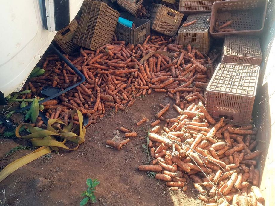 Carreta de cenoura tomba na estrada Pilar do Sul à Tapiraí