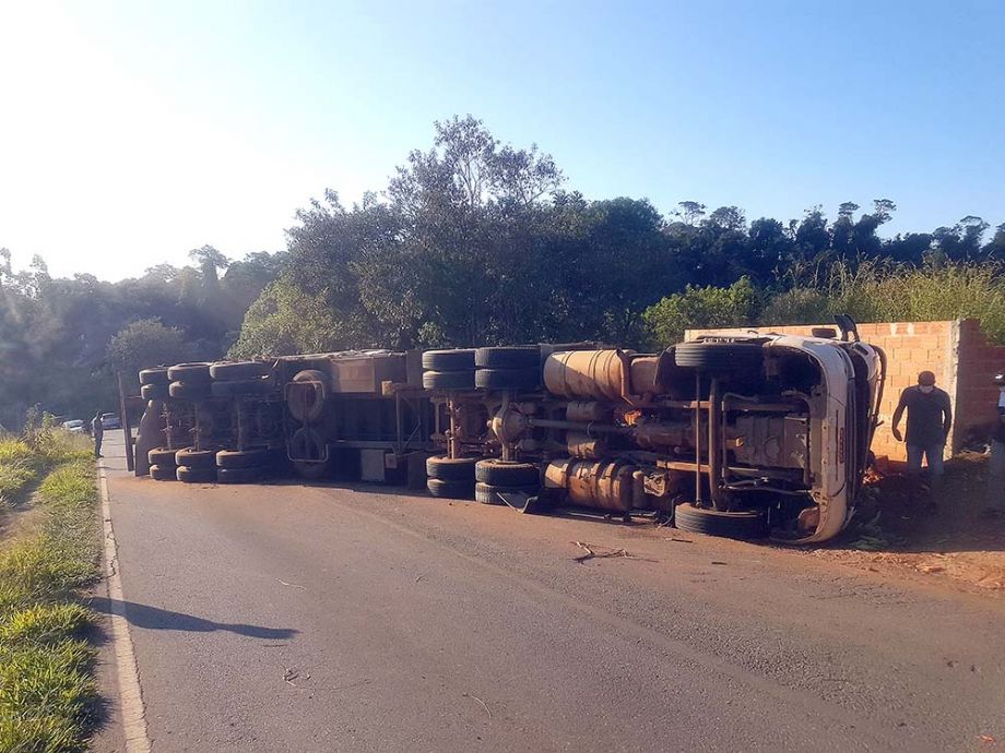 Um motorista de 42 anos ficou ferido em um tombamento de uma carreta Scania na tarde deste sábado (5) no km 0,5 da estrada vicinal José Waldemar Mazzer, na Vila São Manoel, em Pilar do Sul.