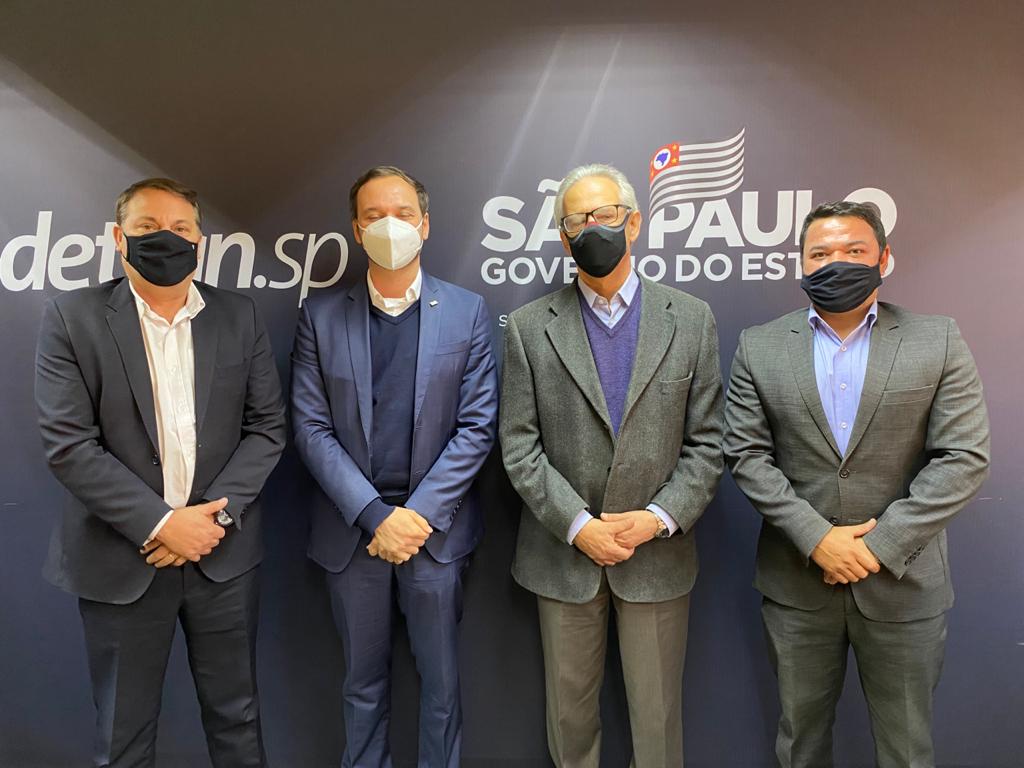 Prefeito Marquinho, Ernesto Mascellani Neto (diretor do Detran-SP), deputado Giriboni e secretário Anderson Luiz / Foto: Divulgação