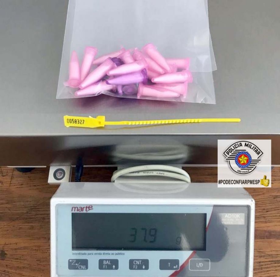 Com o motociclista foi localizado um frasconetes da mesma droga que ele admitiu ter adquirindo de Diogo.