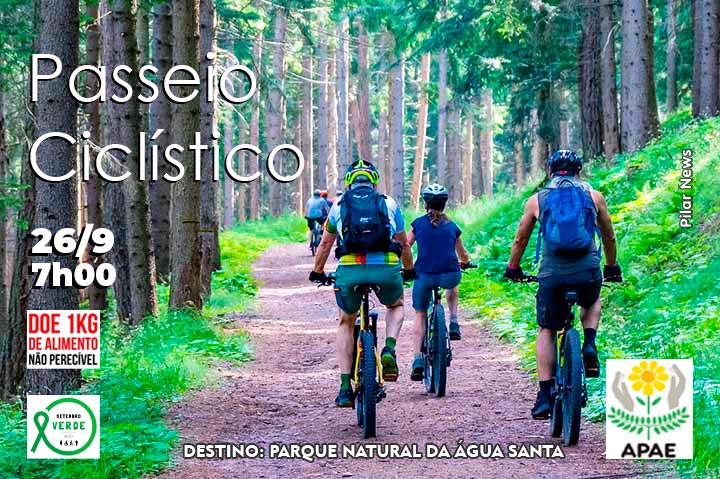 A Associação de Pais e Amigos dos Excepcionais (APAE) e a escola especial Edna A. Ferreira convidam a todos para participar de um passeio ciclístico a ser realizado nesse domingo, 26/9.