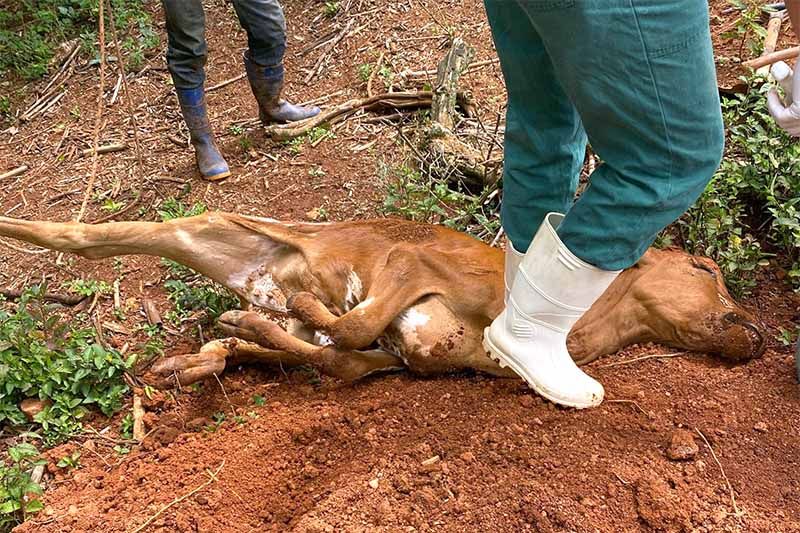 Já no domingo (9), foram coletados mais dois animais que morreram com sintomas nervosos, um no bairro do Claro e outro no bairro do Pombal.