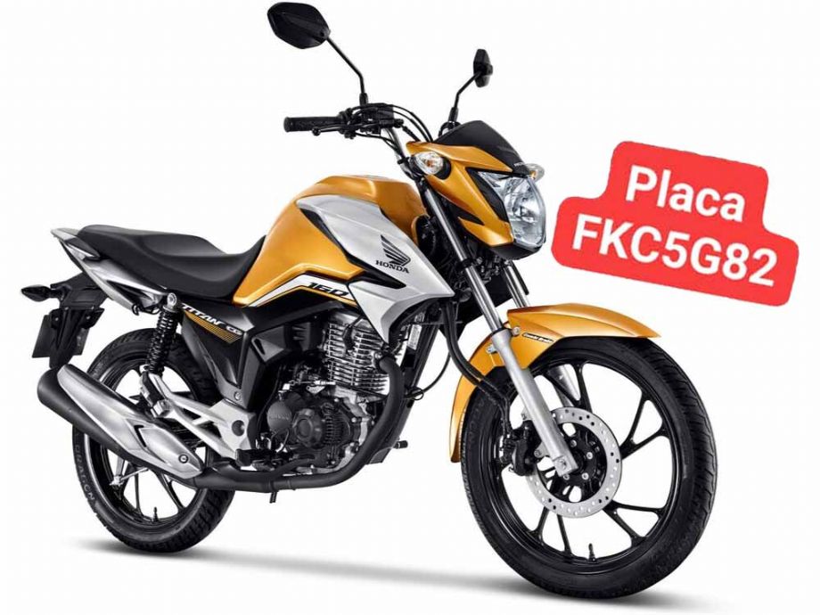Honda CG Titan 160, cor dourada, placa Mercosul FKC5G82.