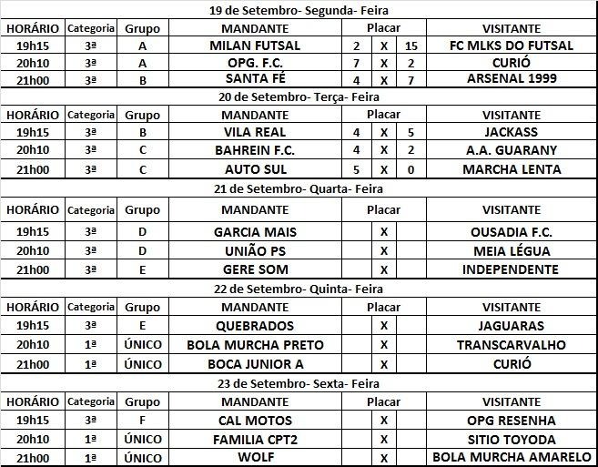 Confira a rodada completa da semana (19 a 23/09):