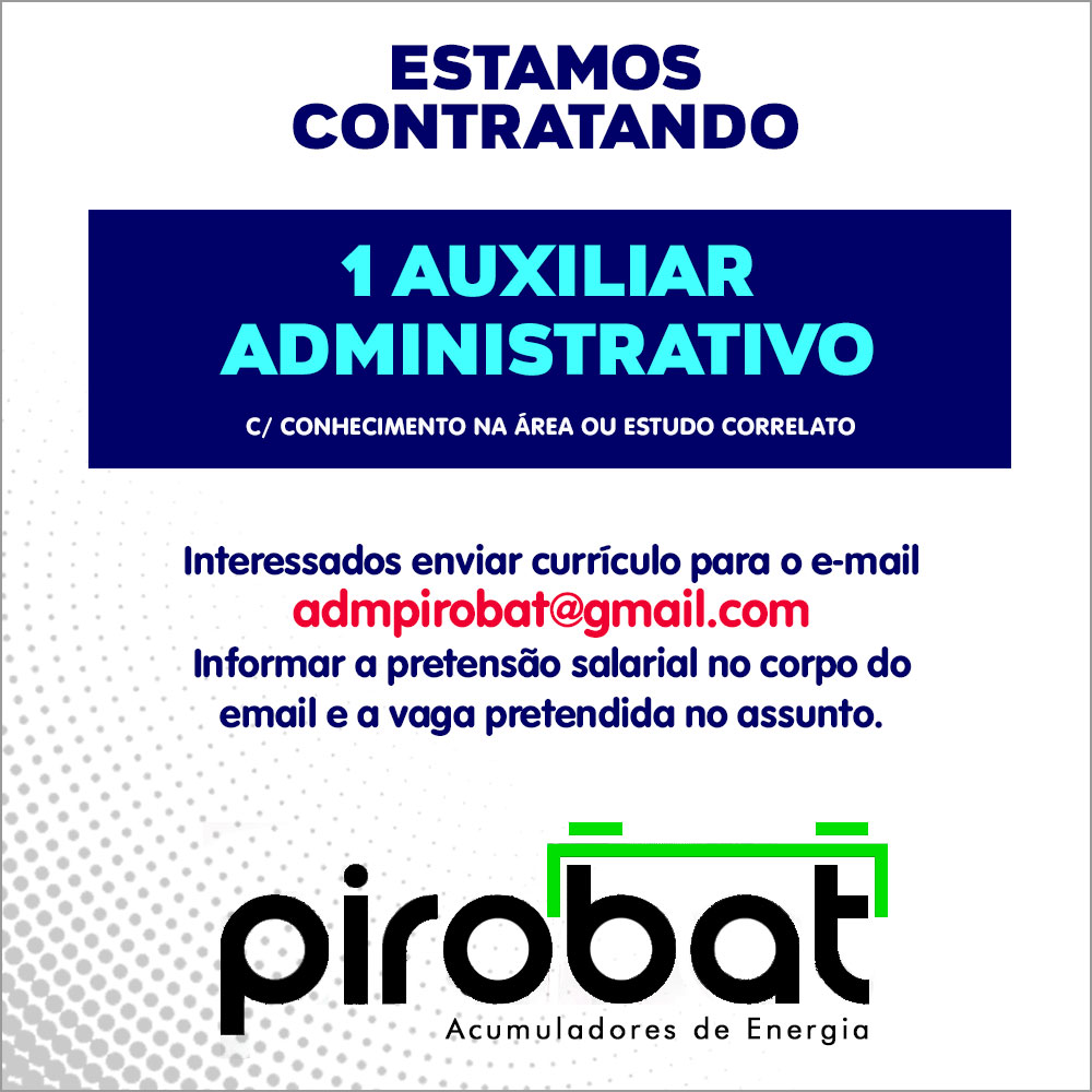 A PIROBAT - empresa líder na produção de baterias automotivas, está admitindo para início imediato: