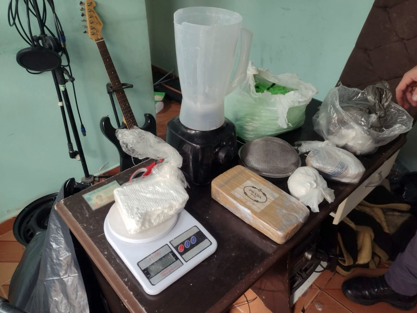 No laboratório foram apreendidos, além de uma balança de precisão e um liquidificador, 6160 frasconetes de cocaína e 350 pedras de crack, todas embaladas e prontas para a venda; um pacote com 541g de cocaína; uma barra de 1kg e outra de 500g de crack; além de 8 mil frasconetes vazios, utilizados para acondicionar cocaína.