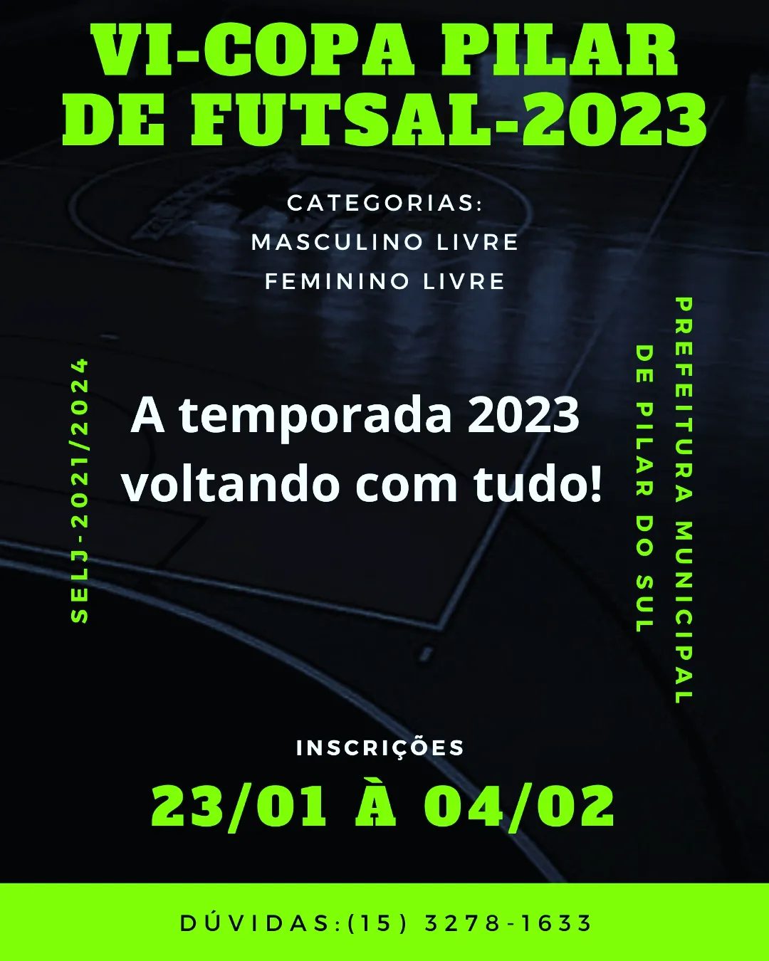 Estão abertas as inscrições para a VI Copa Pilar de Futsal 2023 que contará com duas categorias sendo masculino e feminino com apenas equipes de Pilar do Sul, as inscrições são gratuitas e vão de 23 de janeiro à 6 de fevereiro.