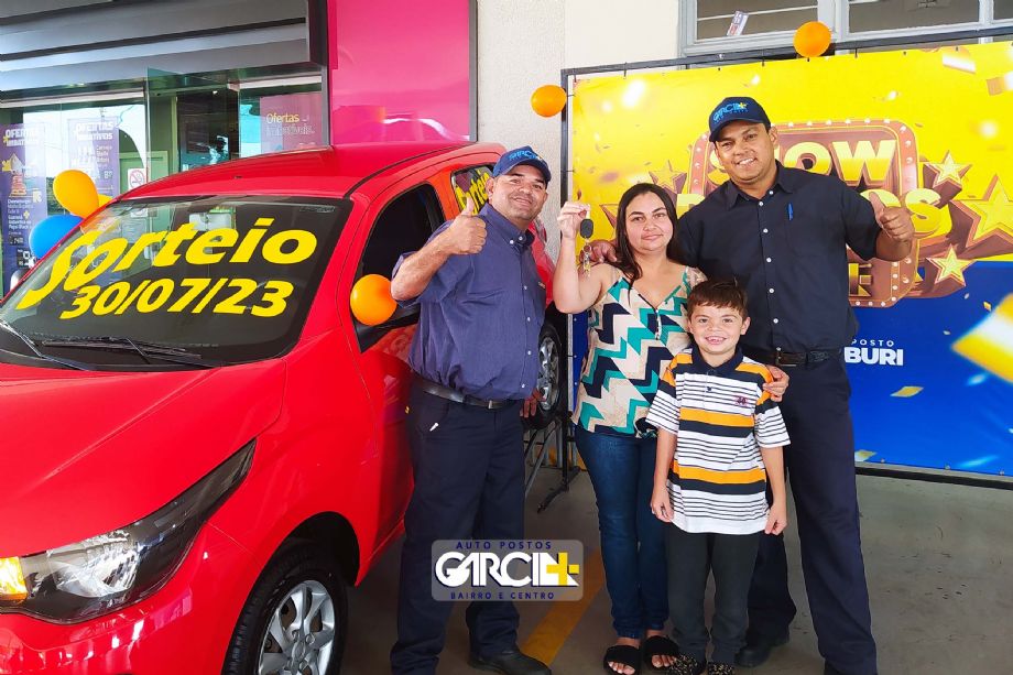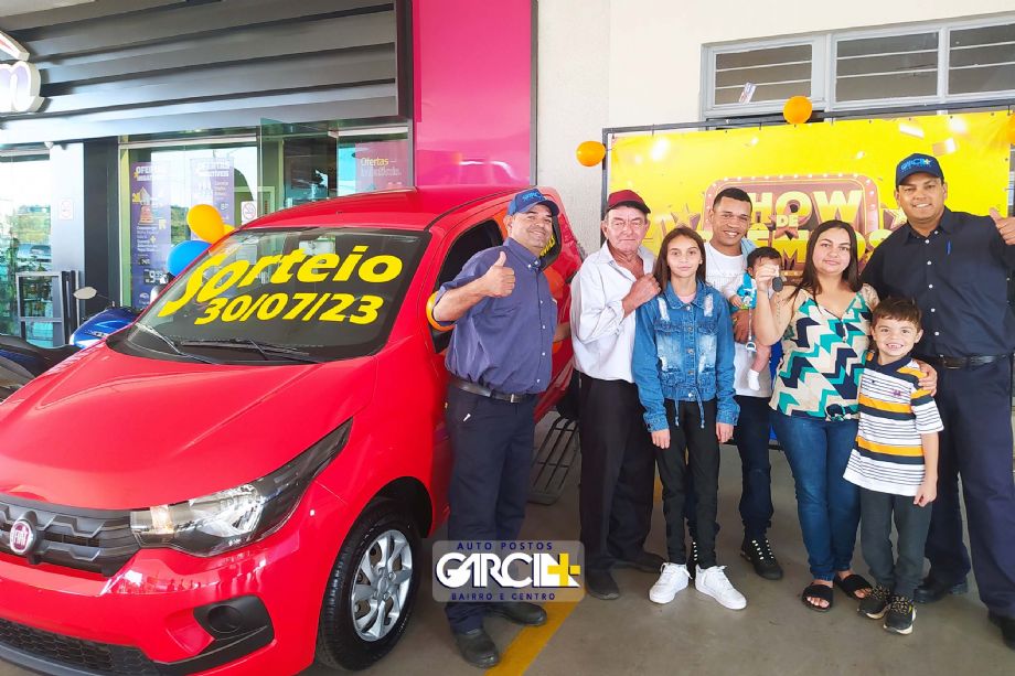 Garcia Mais Auto Postos realizou na tarde deste domingo, 30 de julho, o sorteio de um carro Fiat MOBI 0km, três vales-combustiveis de R$ 1.000 e seis vales-combustíveis de R$ 500 dentro da promoção