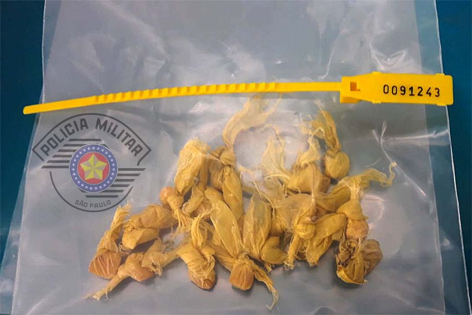 Segundo os policiais, durante a revista pessoal, foram localizadas 16 porções de crack, separadas individualmente, embaladas em sacos plásticos e prontas para a venda.