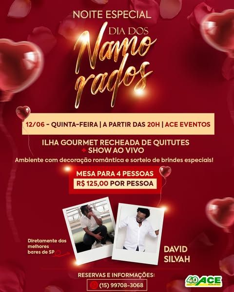 No Dia dos Namorados da ACE, quem comanda o som é David Silvah, diretamente dos melhores bares de SP! Prepare-se para um show inesquecível! 🎤💘