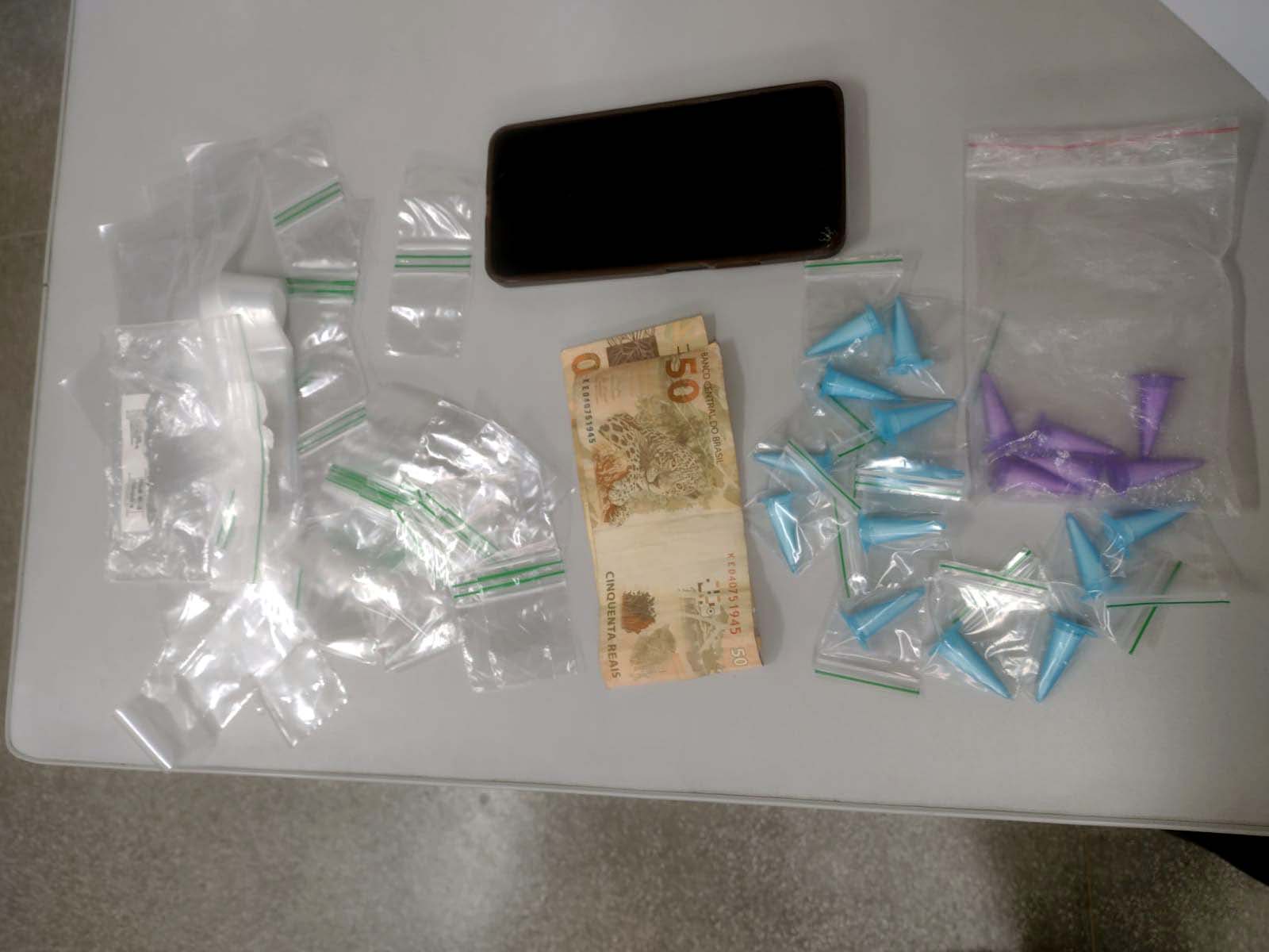 Durante a vistoria, os PMs localizaram 19 flaconetes de cocaína (totalizando 28,6 gramas), além de um celular, onde, verificado com autorização do proprietário, continha mensagens sobre negociações de entorpecentes e diversas transações via Pix.