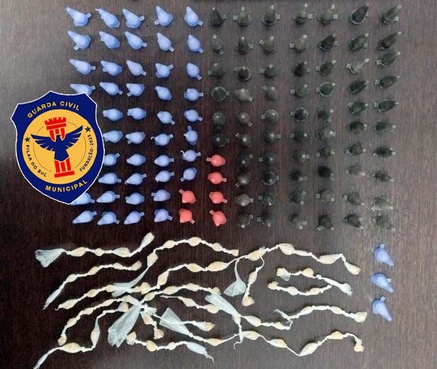Durante uma varredura no local, os guardas encontraram uma mochila próxima a um banco da praça. No interior, havia 120 flaconetes de cocaína e 64 pedras de crack, todas embaladas e prontas para comercialização.