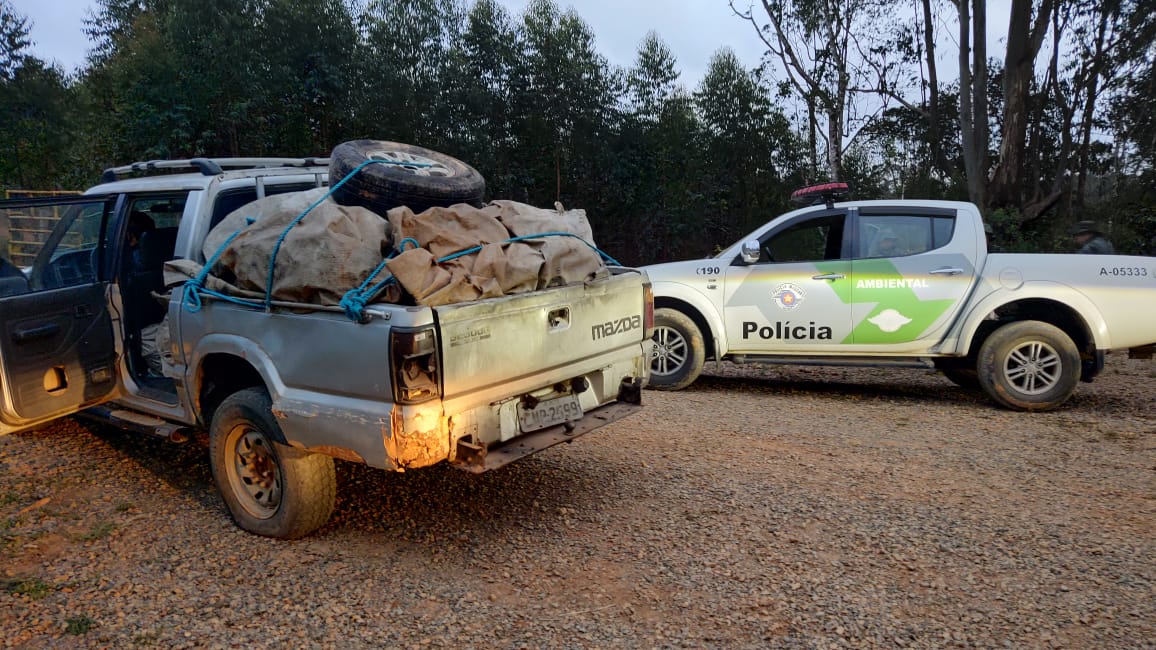 Já na manhã de hoje, por volta das 5h, os policiais visualizaram a movimentação de três homens, que chegaram ao local em uma caminhonete Mazda B2500, com placas de Boituva (SP). Eles foram flagrados carregando o material vegetal na carroceria do veículo, momento em que foram abordados pelos policiais.