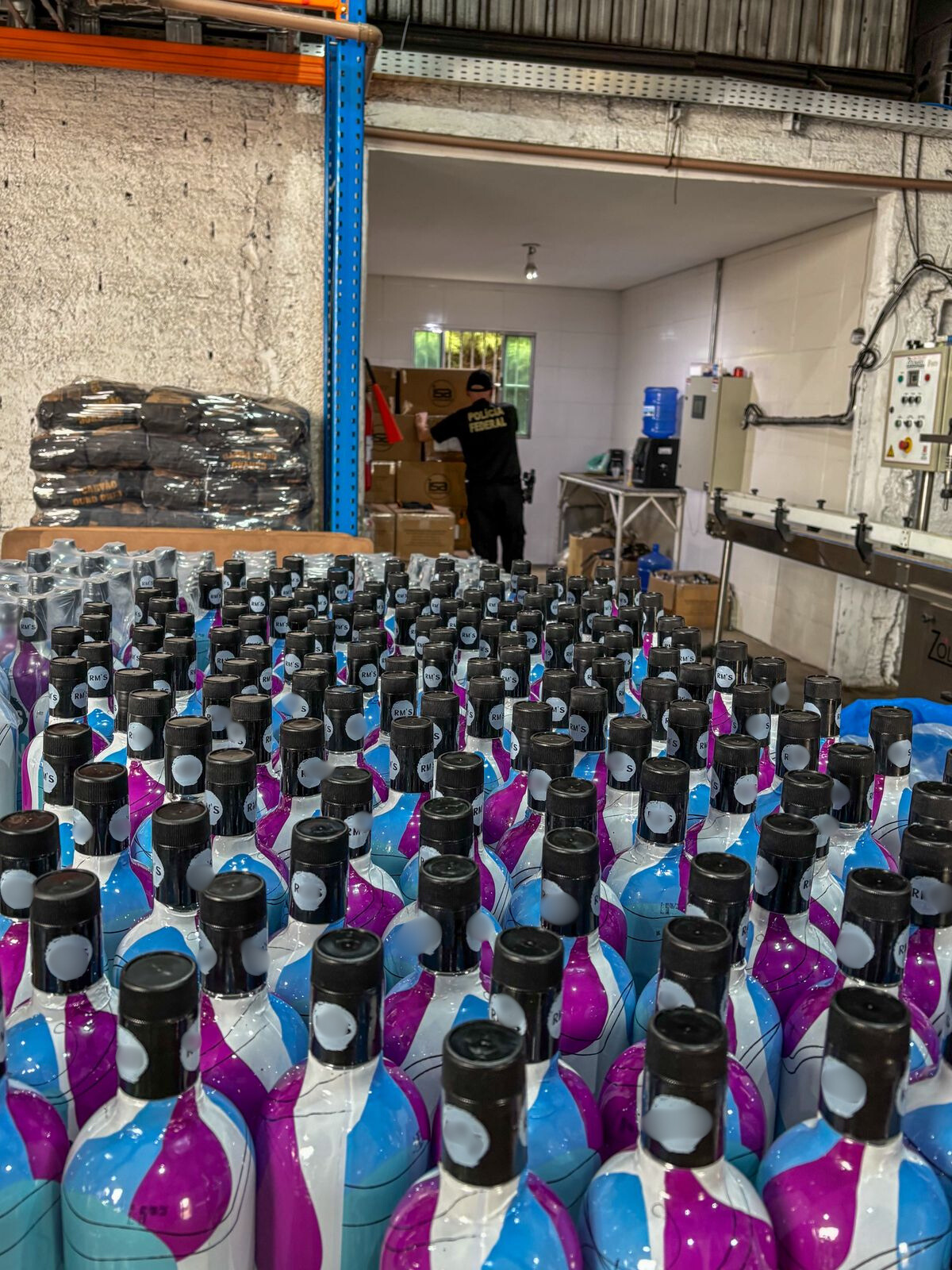 Na empresa, registrada como carvoaria, a PF encontrou bebidas suspeitas de adulteração / Fotos: Divulgação / Polícia Federal