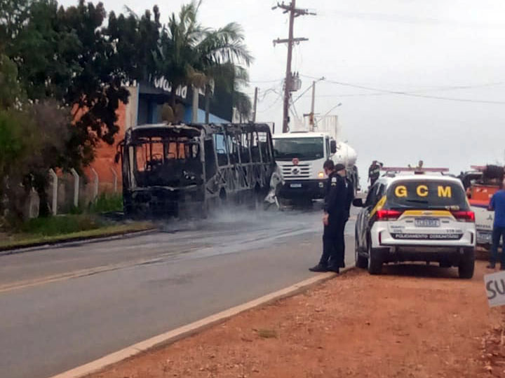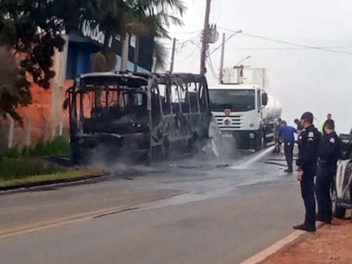 Um ônibus de transporte coletivo da Viação Estevam se incendiou nas primeiras horas da manhã dessa terça-feira (7) na avenida Santos Dumont, no bairro Guaçuzal.