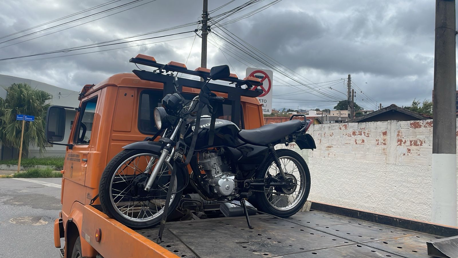 Em consulta, os policiais verificaram que o veículo não possuía registro de furto ou roubo, mas apresentava licenciamento vencido desde 2019, além de restrição administrativa, o que resultou no recolhimento da motocicleta ao pátio do guincho.