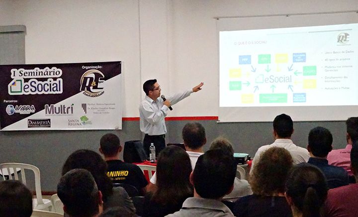 Nesta terça-feira (24/4) foi realizado o ‘1º Seminário e-Social’ organizado pela RE Contabilidade e destinado aos clientes do escritório pilarense. O evento foi coordenado pelo sócios Elton de Goes e Rogério Chiavini e contou com a participação das empresas parceiras: PilarMed Medicina Especializada, Astra Assessoria em Segurança do Trabalho, Multri, Dias Batista Advogados Associados e Fazenda Santa Regina.