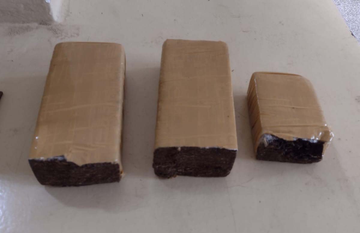 A droga estava dentro de uma sacola, embalada em formato de tijolo, dividida em três partes prensadas, com peso total de 986 gramas de maconha.