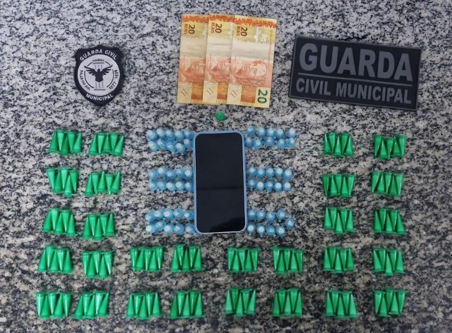 No local onde a sacola havia sido dispensada, o GCM Moraes localizou o objeto, que continha mais 137 flaconetes verdes com cocaína e 56 porções de crack, além de um aparelho celular da marca Apple.