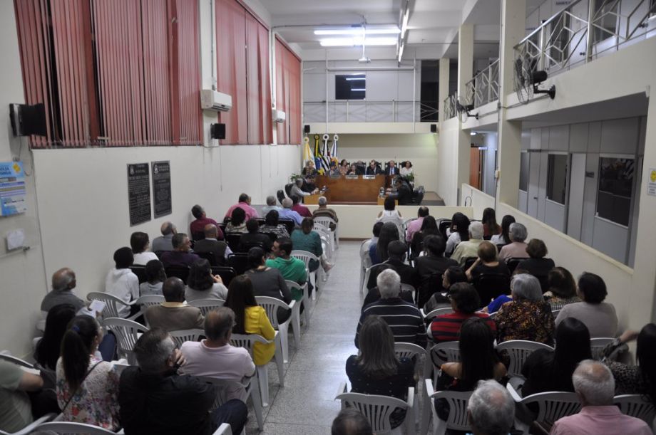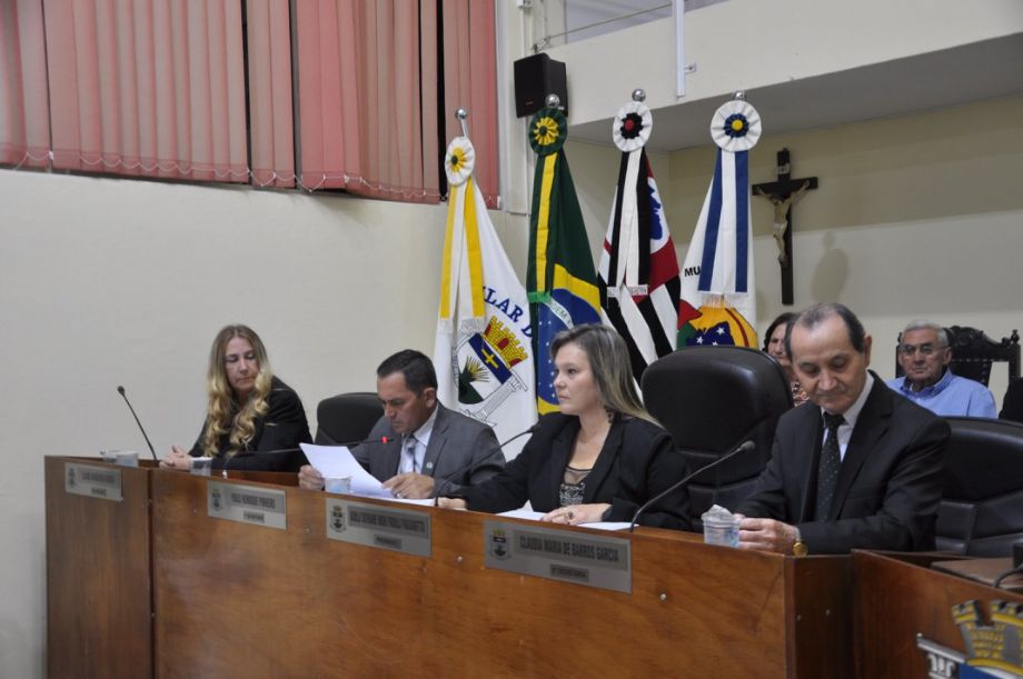 A sessão foi presidida pela vereadora Karla Pagianotto e contou, além dos 11 vereadores, com as presenças do prefeito Antonio José Pereira (DEM) e diversas personalidade e autoridades políticas e eclesiásticas.