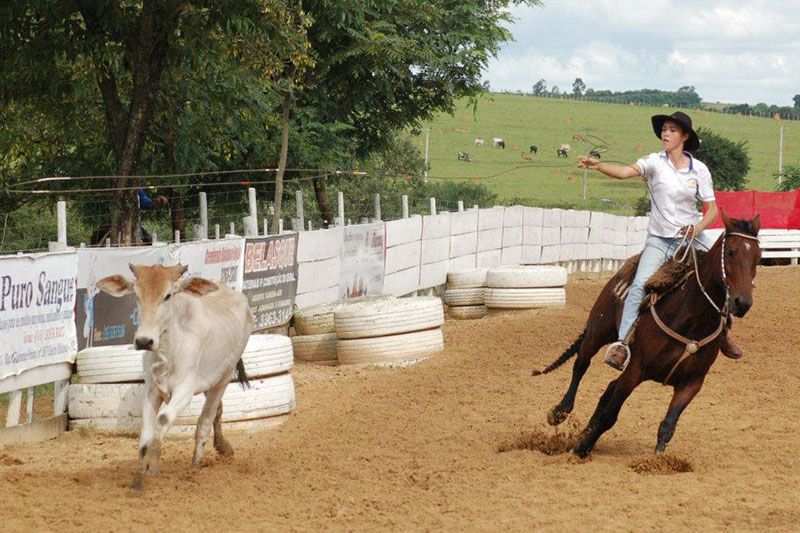 A pilarense de apenas 21 anos já faturou 5 carros, 2 camionetes, 1 trator e 25 motos nas provas de laço comprido