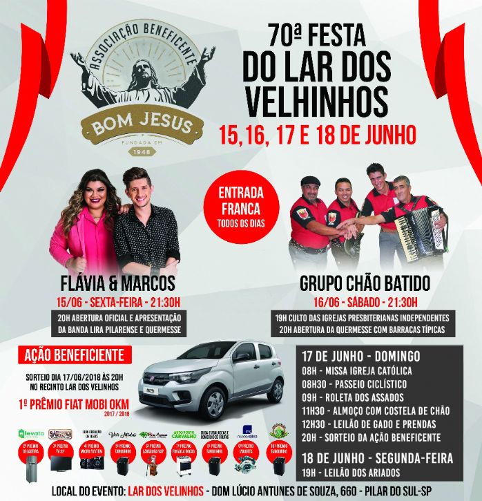 Teve início nesta sexta-feira (15) a 70ª Festa do Lar dos Velhinhos, beneficente a Associação Beneficente Bom Jesus, mantenedora do Asilo.