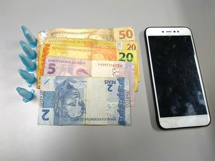 Com Adriano Teixeira de Oliveira os policiais encontraram 5 frasconetes de cocaína e R$ 97 em dinheiro.