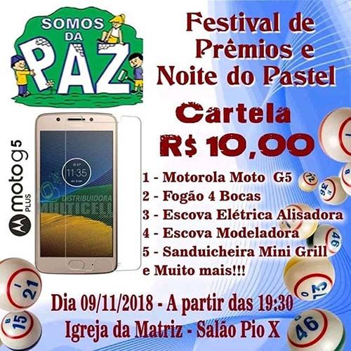 Quer ganhar celular MOTO G5 Plus? Então venha para o FESTIVA DE PRÊMIOS, ajude o projeto SOMOS DA PAZ e concorra a vários prêmios!