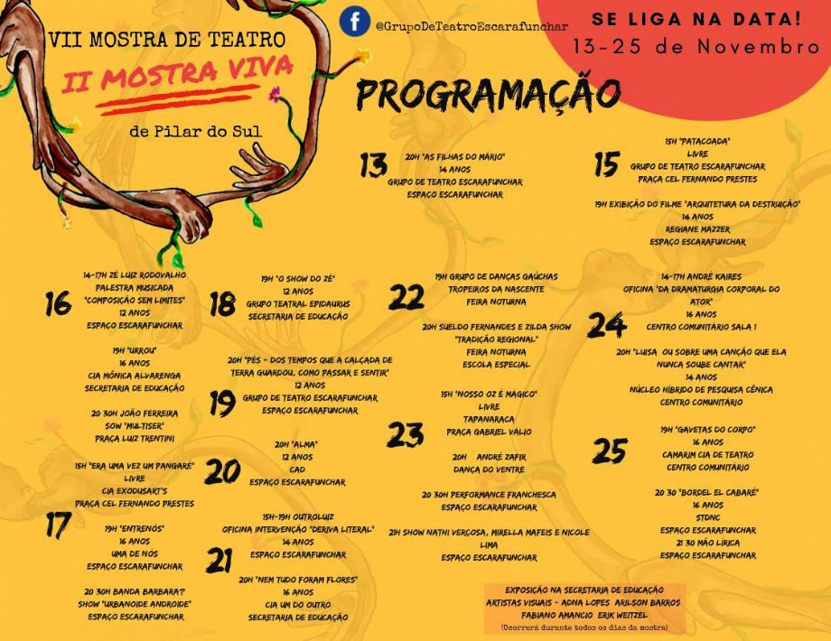 Entre os dias 13 e 25 de novembro será realizada a II Mostra Viva e VII Mostra de Teatro de Pilar do Sul.