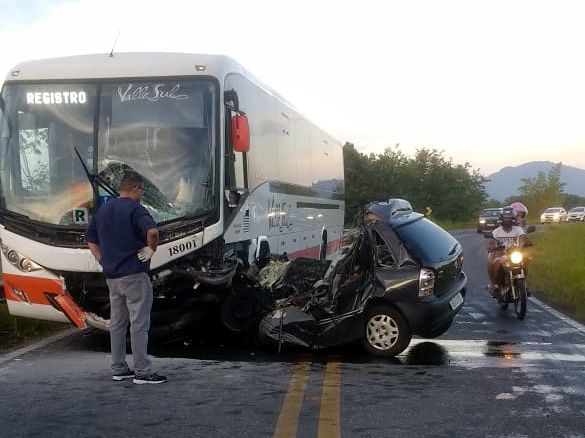 De acordo com a polícia, o carro em que estavam as vítimas bateu de frente com um ônibus em um trecho conhecido como ‘Curva do Sorocabinha’, na altura do km 61 da rodovia que liga Iguape a Pariquera-Açu.