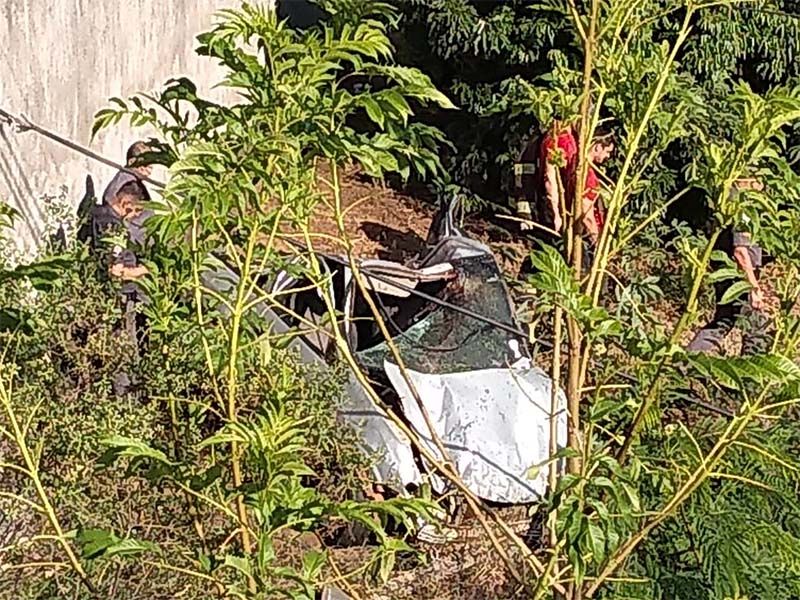 Carro saiu da pista, decolou por cerca de 20 metros e caiu na ribanceira de aproximadamente seis metros de altura