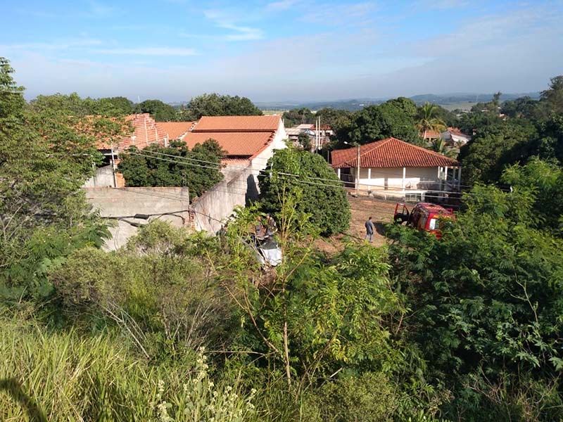 Desgovernado, o carro decolou por cerca de 20 metros, caiu em uma ribanceira de aproximadamente seis metros de altura e se chocou contra o muro de uma residência.