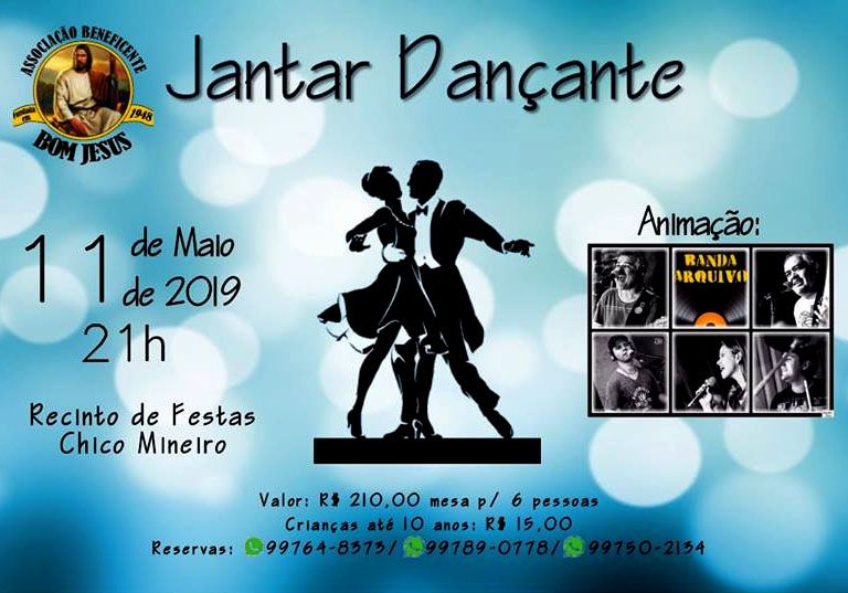 Será realizado no próximo sábado (dia 11 de maio) a partir das 21 horas no recinto Chico Mineiro, um Jantar Dançante Beneficente ao Lar dos Velhinhos (Asilo).